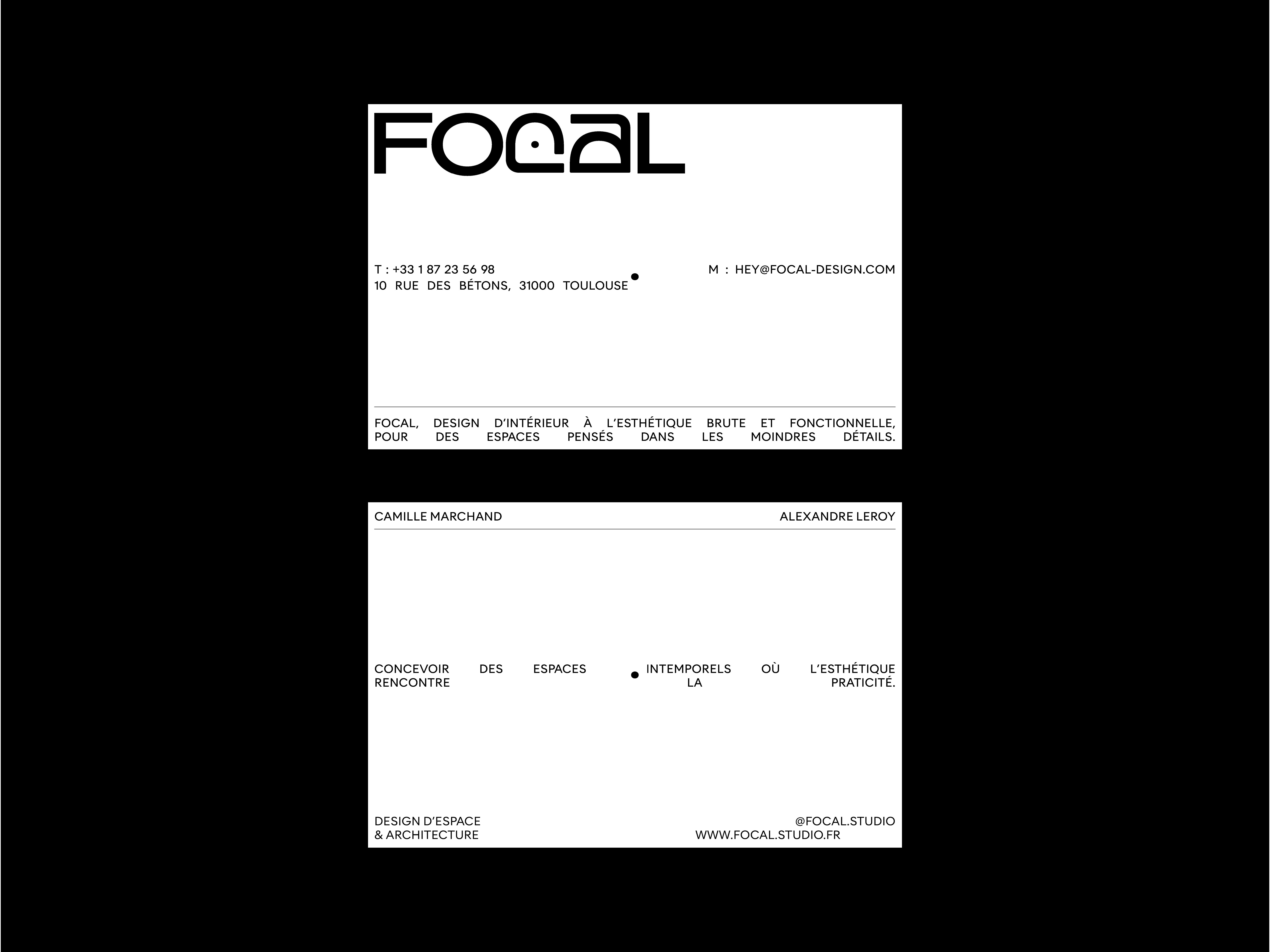 Premiers éléments de la nouvelle identité visuelle de l'agence de design d'intérieur & d'architecture Focal.