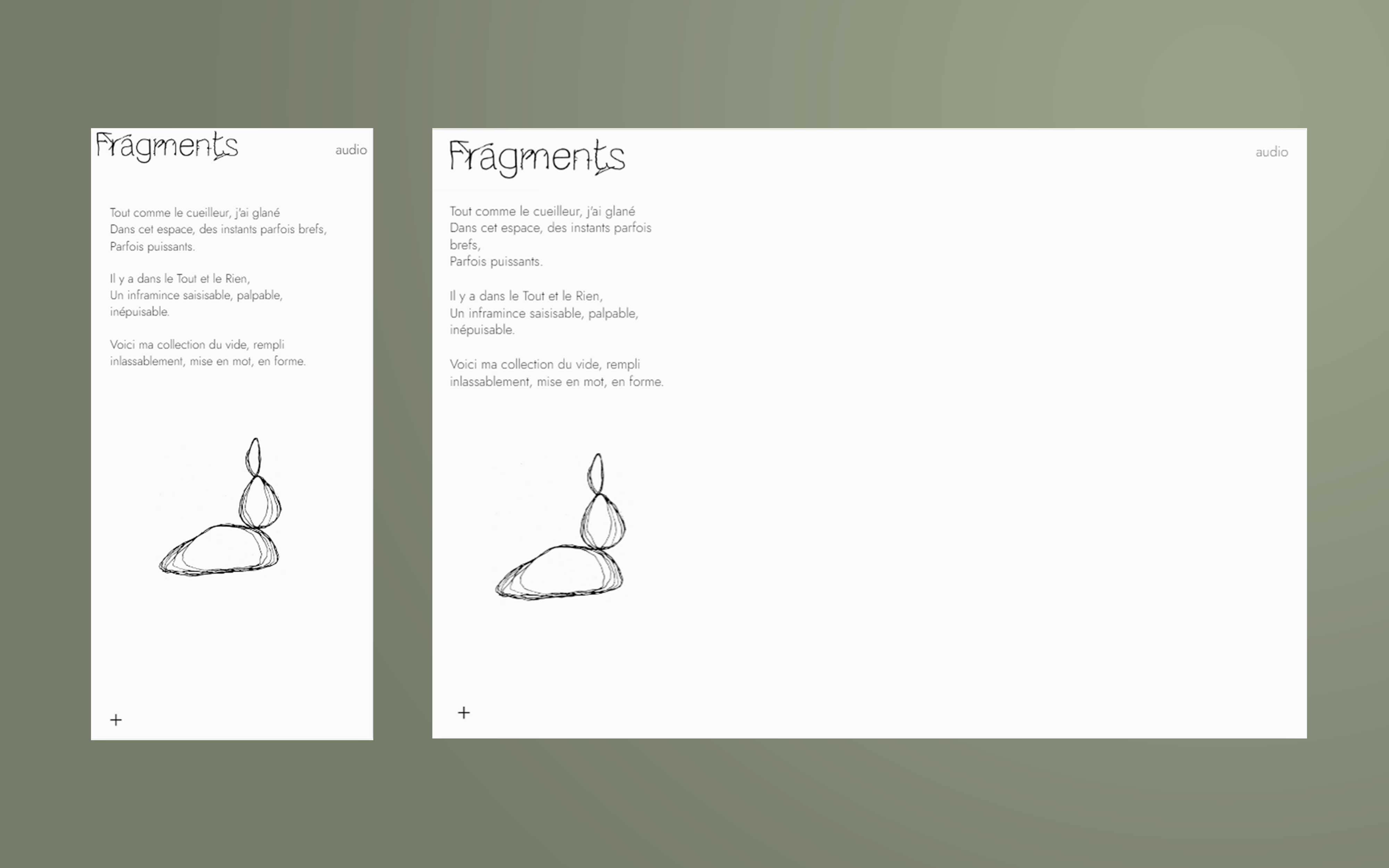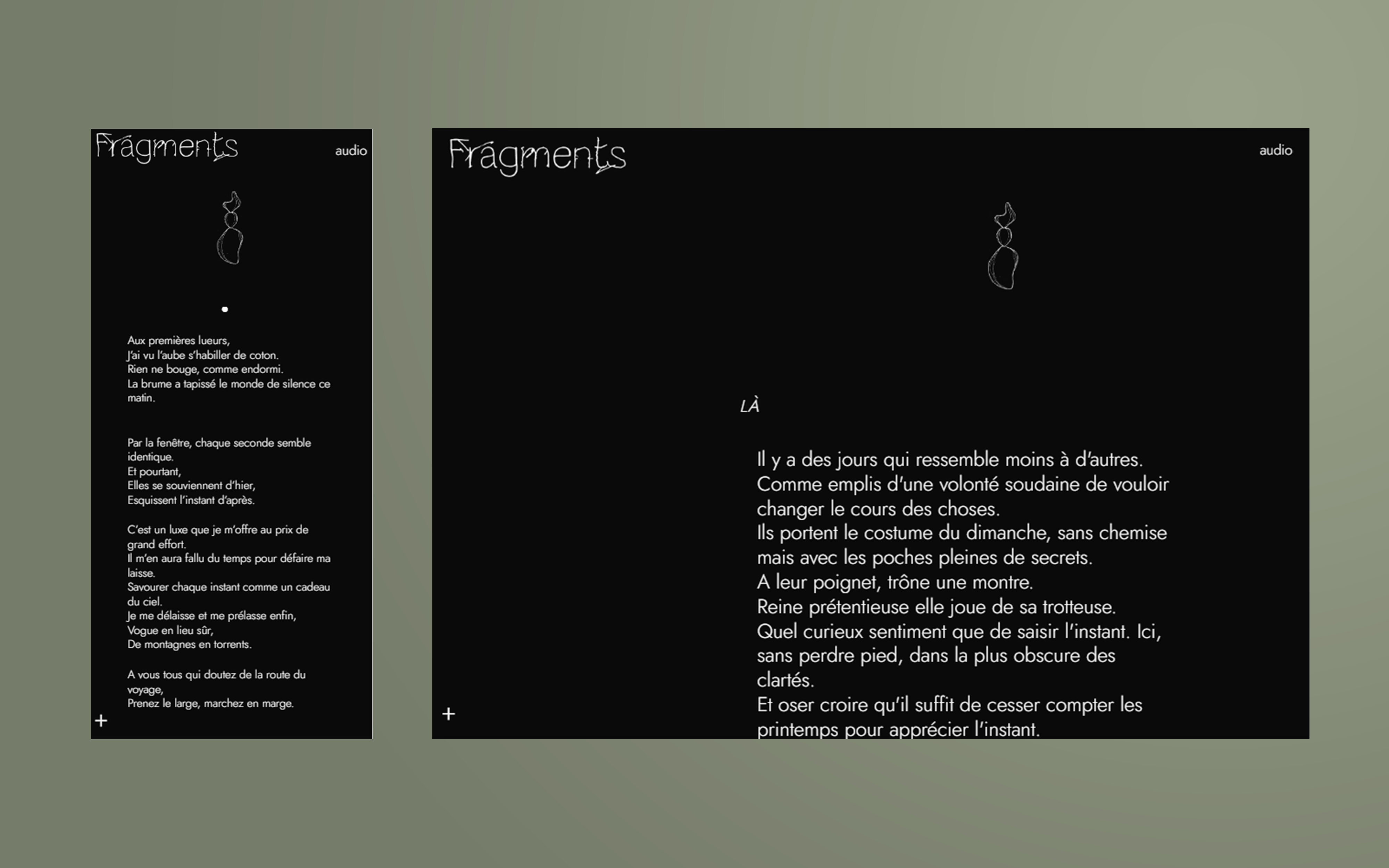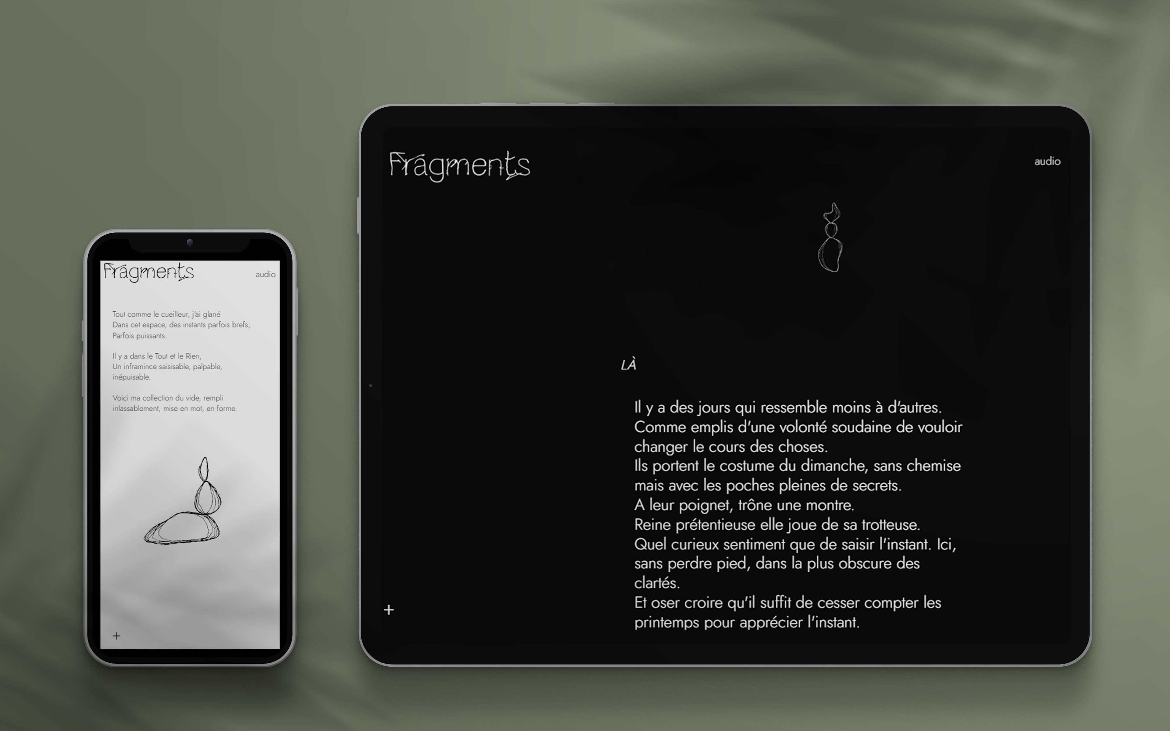Fragments est un site Internet qui donne à voir les poèmes écrits par un poète et randonneur Pyrénéen. C'est pour la traversée des Pyrénées (GR10) que ce projet a été réalisé, tout au long de sa traversée le poète y publia ses écrits.