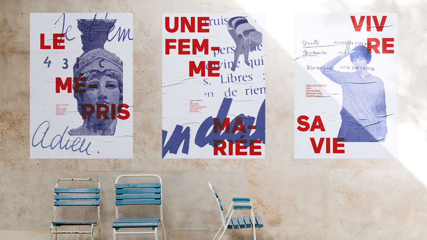 Après avoir épluché chacun des films de Jean-Luc Godard et collecté chacune des images où figuraient de l'écrit ou une image marquante, j'ai ré-imaginé des affiches de ses films à partir de ces éléments-là.