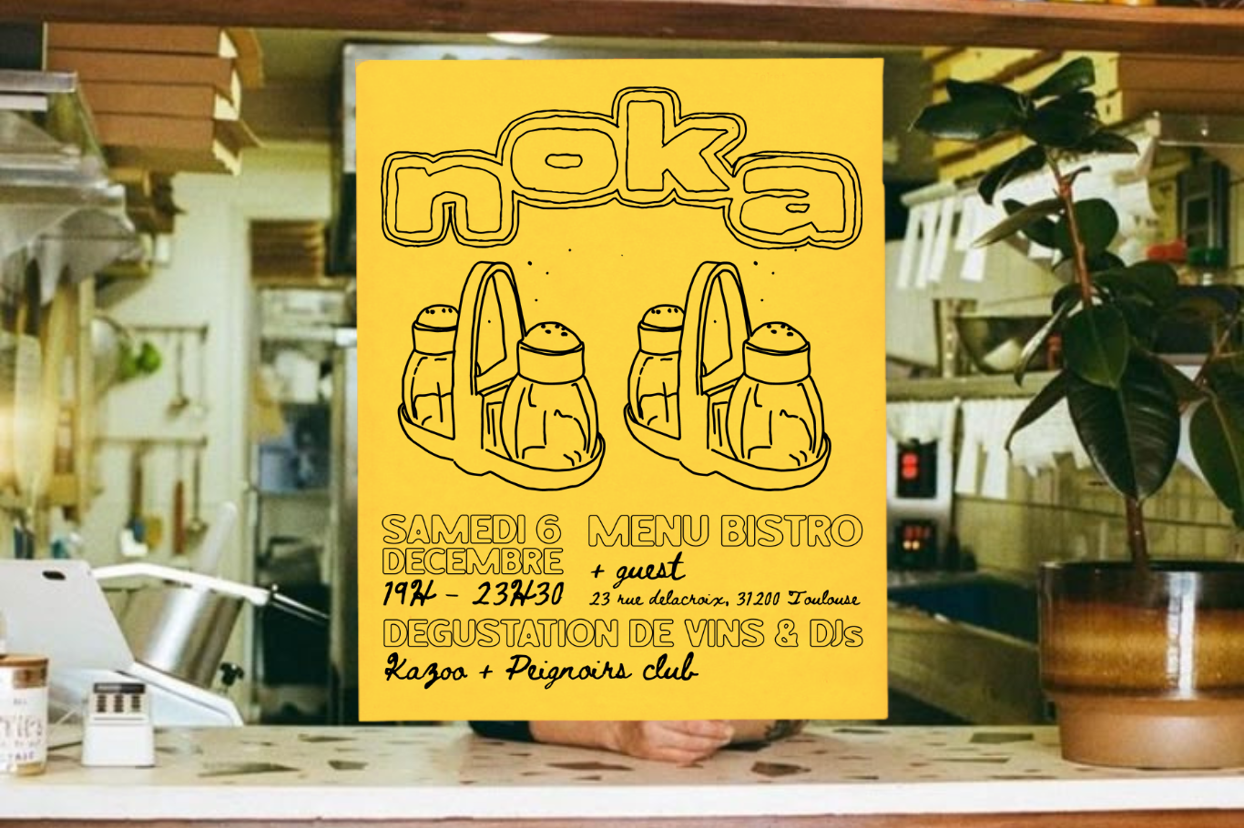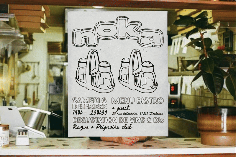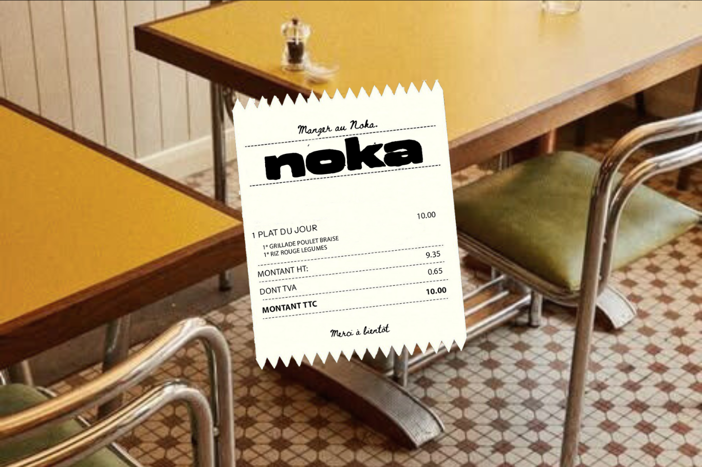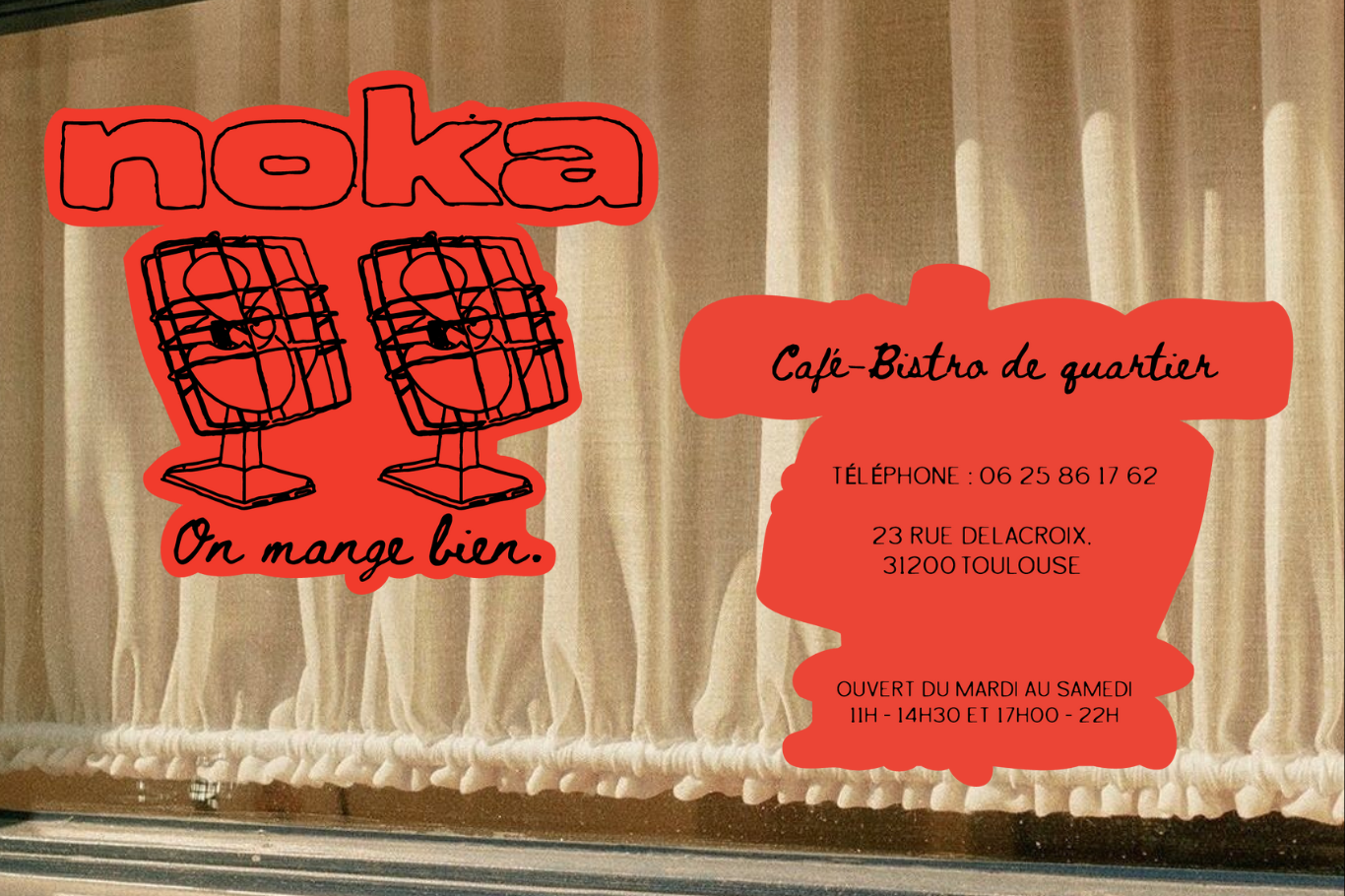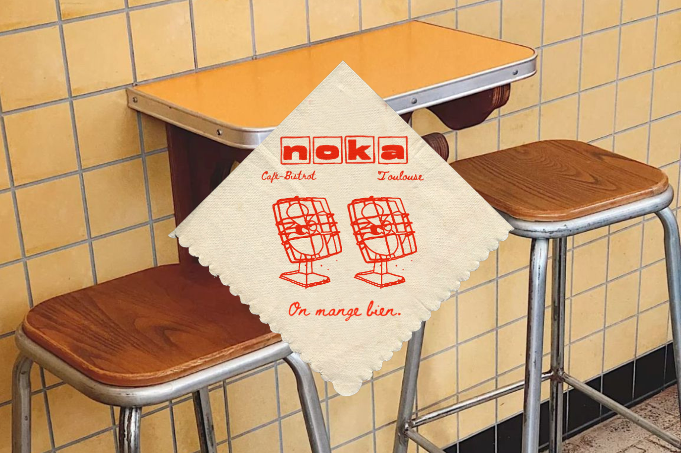 Identité pour le nouveau Café-bistrot Toulousain Noka, qui mise sur la simplicité : une carte courte et de bons produits.