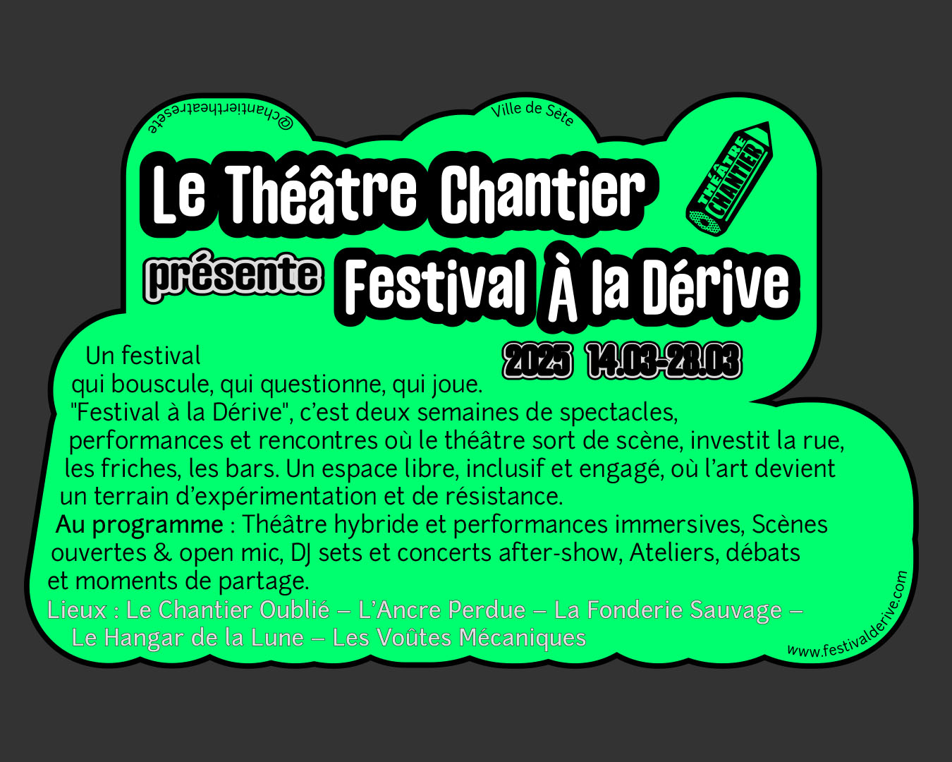Nouvelle identité visuelle pour Le Théâtre Chantier et la première édition de leur festival : Festival à la Dérive.