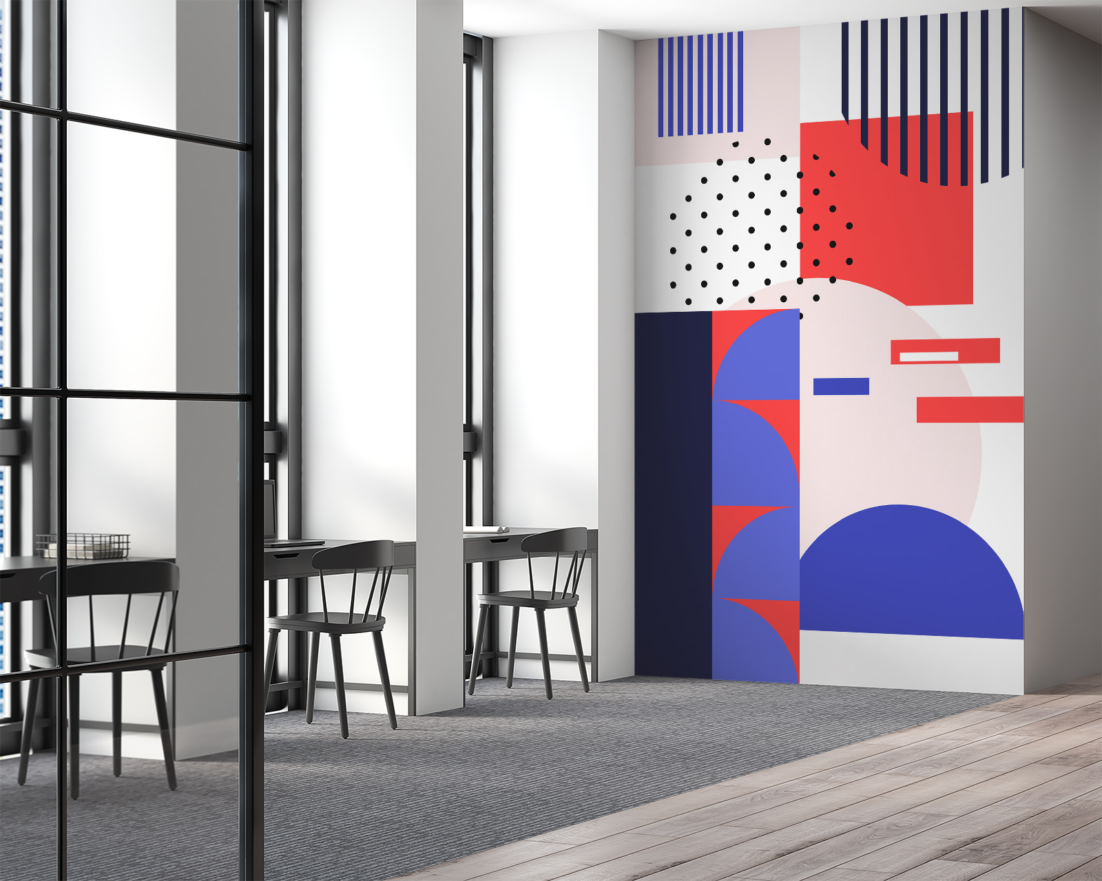 J'ai produit 2 motifs en réinterprêtant les motifs de la mosaïque du hall d’entrée, qui seront ensuite imprimés à la dimension des murs des fonds de couloir sur un lé en vinyle encadré par des baguettes.